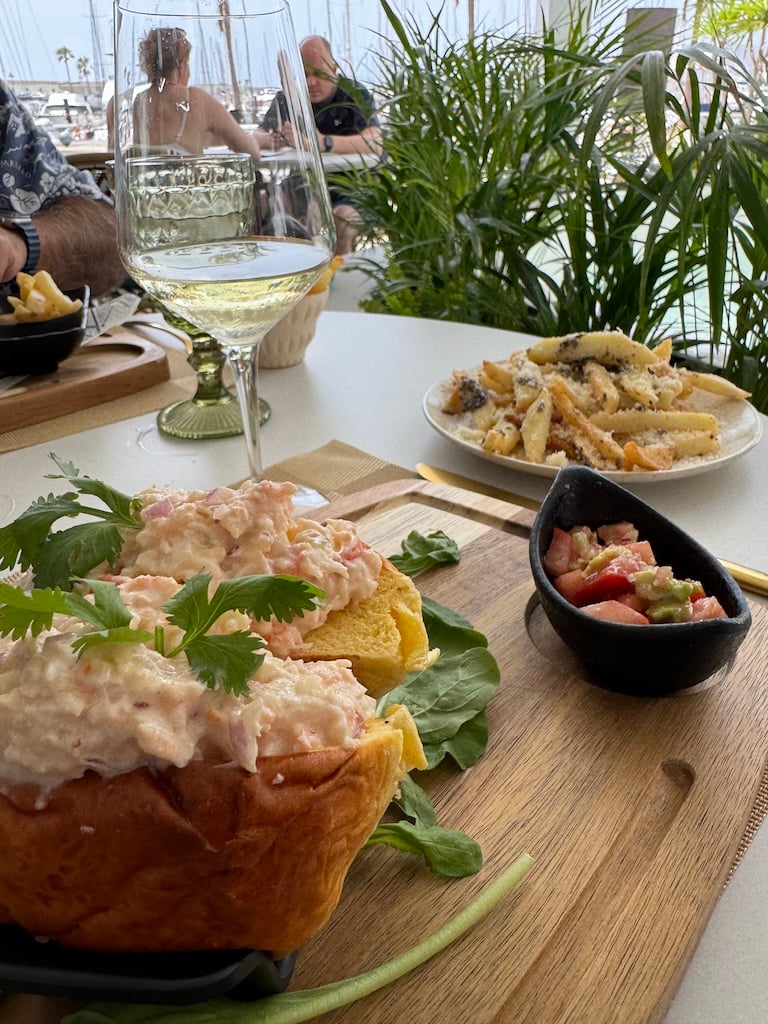 But for this lunch, as mentioned, we chose from the snack menu. Julie went for a lobster roll, and I chose a Club Rubicon sandwich, and we shared some truffle parmesan fries.