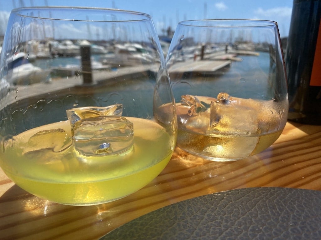 The restaurant is in the middle of the marina, and despite not having booked, we were given a table right on the water’s edge, but nicely shaded.