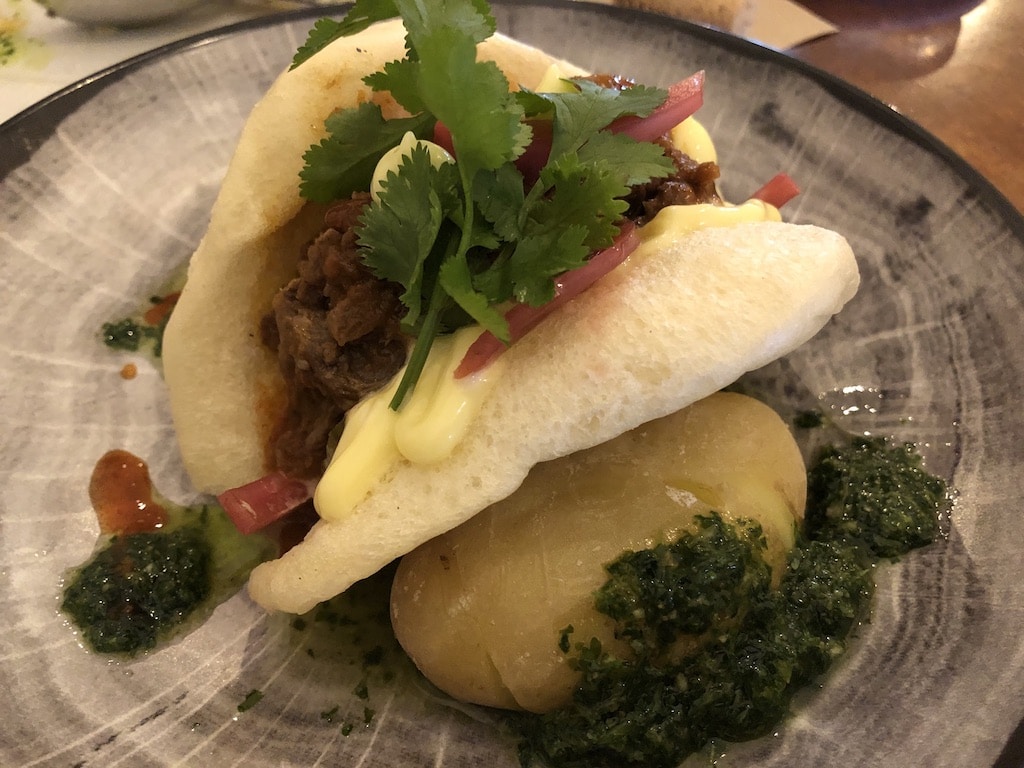 Next up, our steamed bread. This was a really clever dish – it looks like a doner kebab, but uses Chinese style steamed bread instead of pita. The bread is puffy, soft and light. The filling was an explosion of flavour – rich, dark goat’s meat which must have been cooked for several hours as it was so tender. It was wonderful to find a dish which ticked so many boxes – wonderful taste, beautiful presentation and everything in perfect balance.