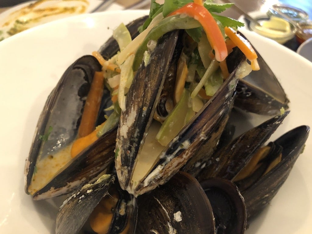 The mussels that arrived were cooked with a finger licking coconut milk sauce, with ginger, lime and julienned vegetables. The mussels were amazing – really large and very succulent, and the sauce was fantastic! My previous favourite mussel dish ever was a meal we had in the Orkney’s, but this one topped it.