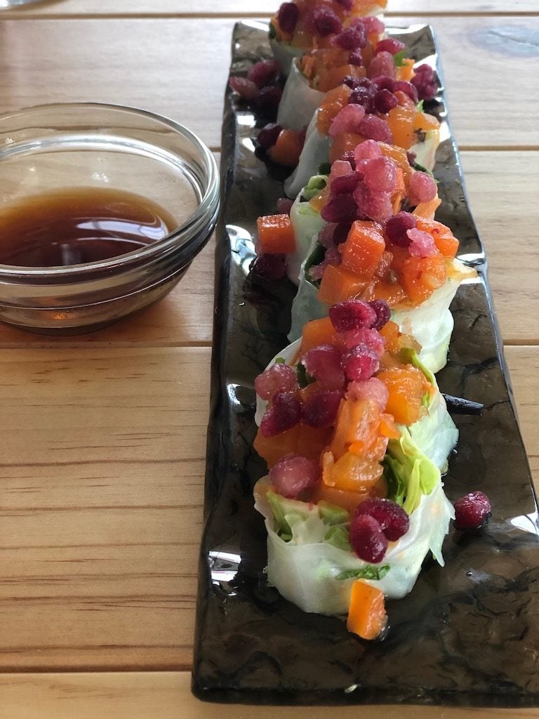 One thing we really liked was that each dish was presented to us with both an explanation as to what was in it, and a suggestion for how best to eat it – for example to wrap the spring rolls in the lettuce leaf to pick them up.