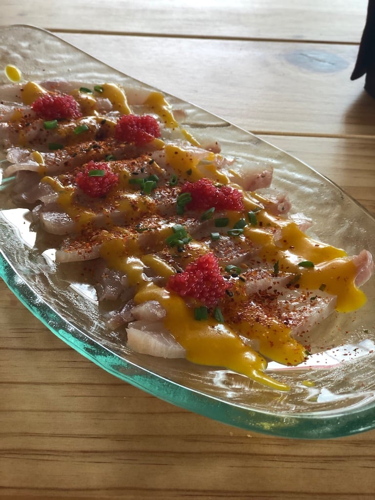 Our final savoury dish was Sashimi de Pescado Blanco. Raw white fish served with a yellow sauce and dressed with chill flakes. This was also excellent – the fish was really fresh and still had some bite, and there was just enough chilli seasoning to make it zing in your mouth.
