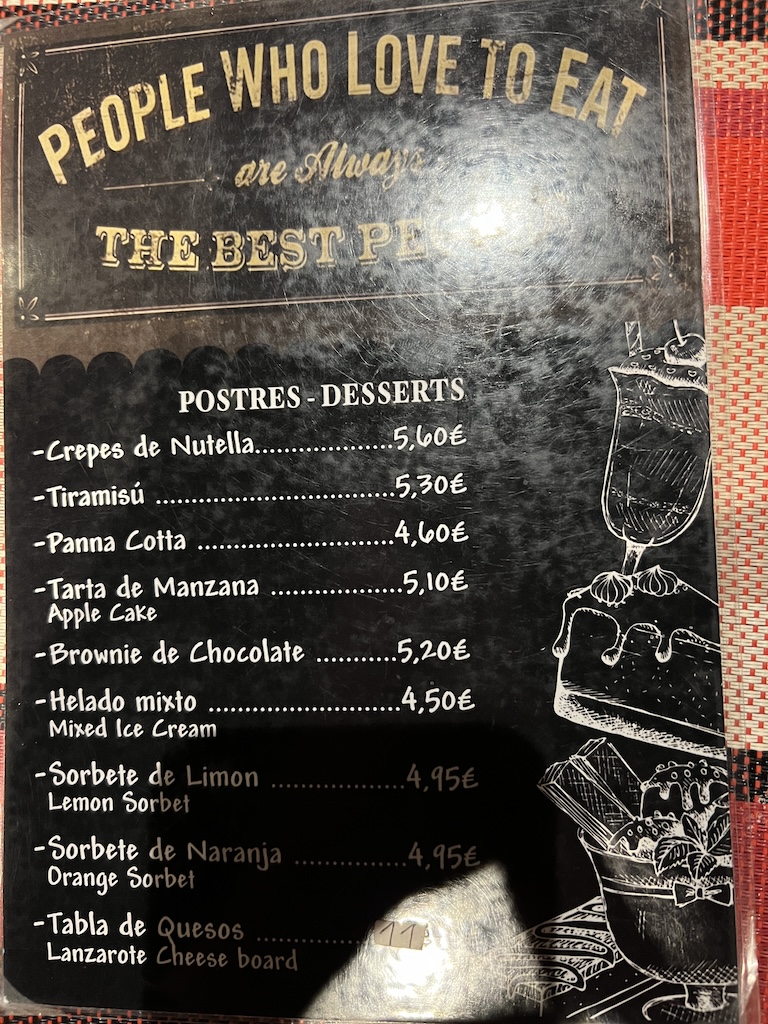 Our bill came to a very reasonable €30 a head. Sausalito are open Tuesday to Saturday from 18:00 until 22:00. It’s a very popular place, so I’d advise booking by calling them on +34 928 59 08 67.