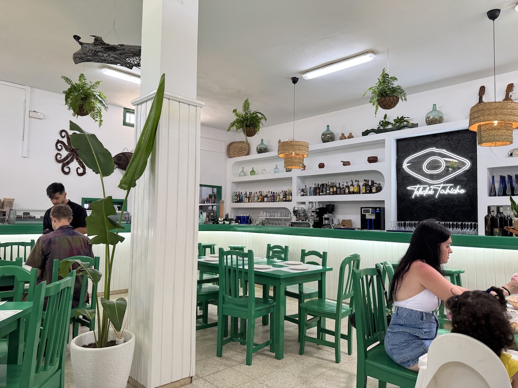 Josué and Cristian have done a super job with their makeover – they’ve put in new decorations, a jazzy neon sign, and above all, they’ve given the place a really deep clean. It now really looks the part. The tables have been painted Lanzarote Green, and the outside space on the terrace looks like a super place for watching the sun set with a cocktail.