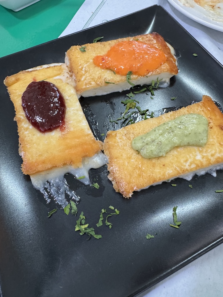 The grilled cheese was served melting and each of the three pieces had a different topping – two with mojo (red and green) and the other with fig jam. I normally find this goat’s cheese dish a little bland, but they’ve used a decently strong cheese, and it was wonderful.