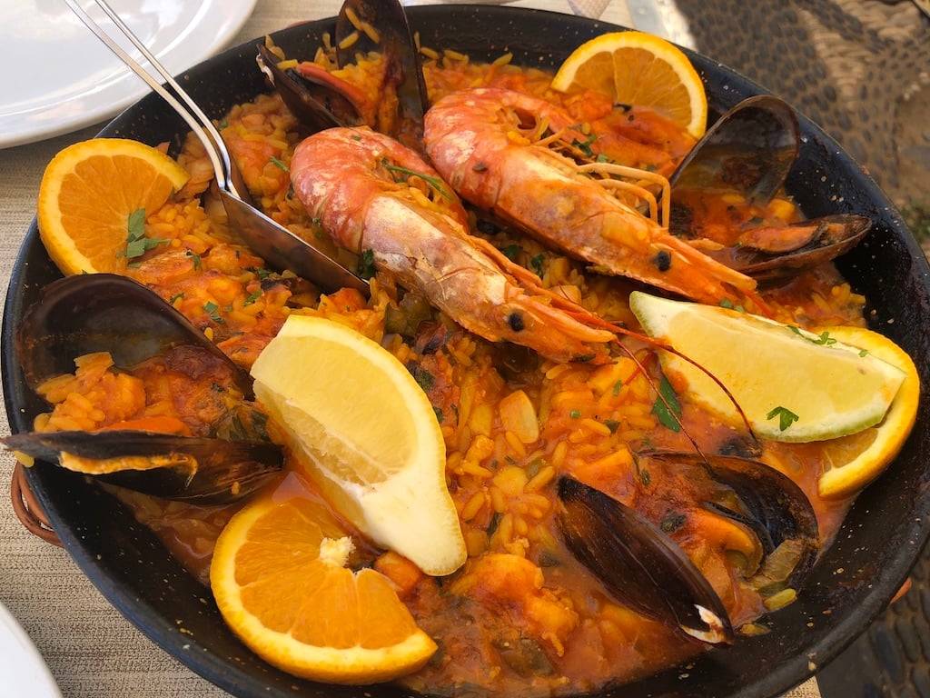 Our total bill was €61, which included a shared starter, bottles of good wine and water, coffee and liqueur. The paella was €23.50 for two of us.