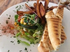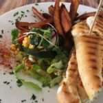 The breakfast menu is available until 3pm, serving eggs benedict, steak & eggs, kippers, pancakes as well as fry ups and other options. I decided to order the Cajun chicken panini and Miguel ordered the Moo Yorker burger, both come with chips and salad.