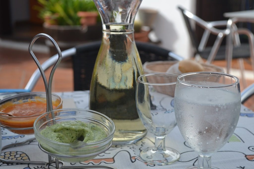 It was our first time eating at the Volcan de La Corona, this restaurant has a patio area with a few tables outside and a large dining room inside. On this occasion we preferred to sit outside, it was a lovely day and we had a table in the shade. The fresh mojo sauces delivered with bread were good, in fact the Mojo Verde was one of the best we’ve ever sampled.