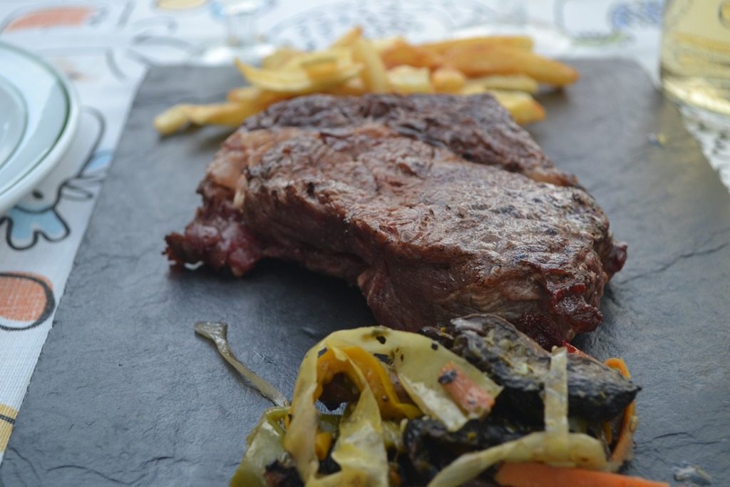 The menu isn’t extensive at this restaurant, it’s all about the meat with a selection of tapas dishes as starters. We’d worked up an appetite walking, so Miguel ordered the grilled goat’s cheese and I ordered the Canarian stew for starters. I had food envy when they arrived and ended up stealing one of Miguel’s cheeses and it was stunning! My potaje was tasty, full of maize, chick peas and meat, but it was too much for just a starter and as I said earlier, this restaurant has a wood fired grill, so it’s all about the meat.