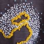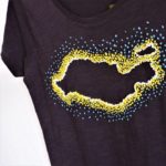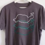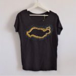 It’s actually two different ecologic cotton t-shirts with the outline of Lanzarote embroidered by hand using different techniques: one using chain stitches and the other one French knots.