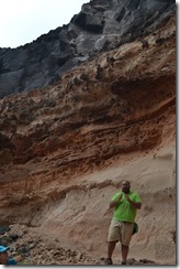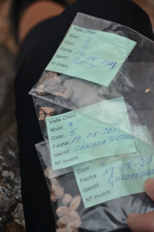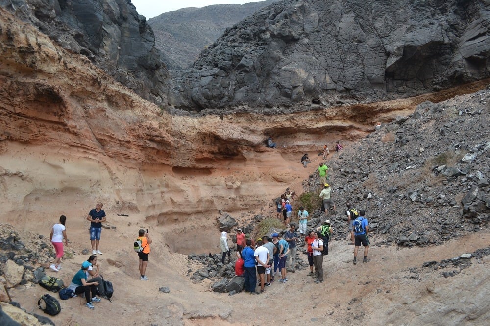 We followed the footpath around to the left on exiting Valle Grande which led down to the beach Playa de Atras. There is a car park here accessed by a well used dirt track from the village. The footpath climbs up to the left of the beach following the edge of the cliff face, until you turn the corner and arrive at Valle Chico. The excavation team were working high up at the back of this site. The earth here is much finer and lower down than the other site, evidence of turtle eggs has been found in this location.