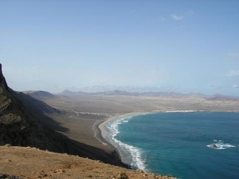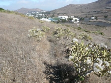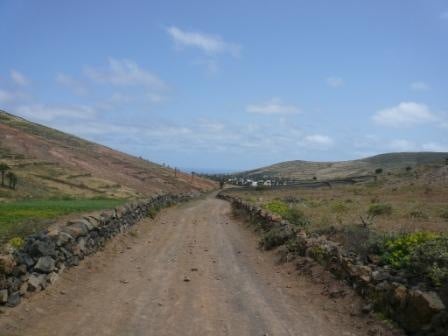 For the longer route continue along the road you were on in the same direction, you should have the barranco on the left side and the rural hotel La Casa de los Naranjos with orange trees in the front garden on your right. This road meanders between the two hills, it does become a dirt track as you exit the village but its easy underfoot and slightly up hill. At the top you are rewarded with a panoramic view down to Famara and if you look back down to Haría you can see the sea on the other coast too. Continue along this track which will circle back around the base of Montaña Ganada and around to the pointer number 5 where it meets the shorter version.