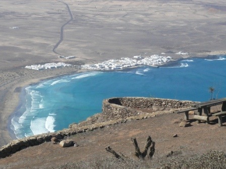 There are numerous wooden bench style picnic tables and built in barbecues scattered in between the trees, pick your spot to enjoy your snack / lunch with the panoramic view down to Famara or over to La Graciosa. There is a lovely children’s play area here too. You can find more information and photos on our earlier post Lanzarote’s Forest Bosque de Haría which explains how to find the area by car. The full route from the village to the picnic area is approx 8km.