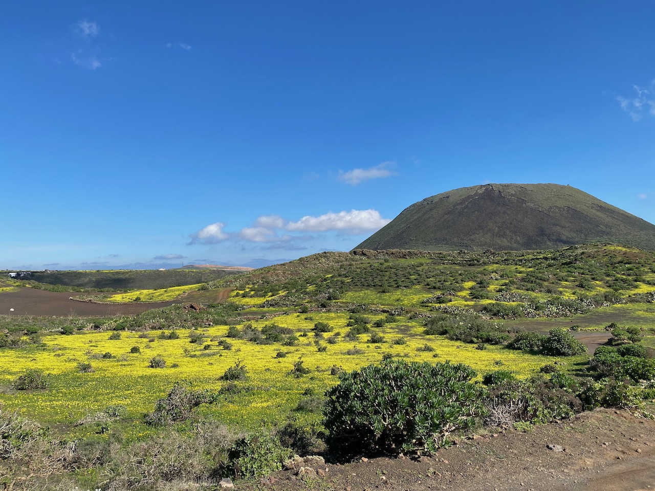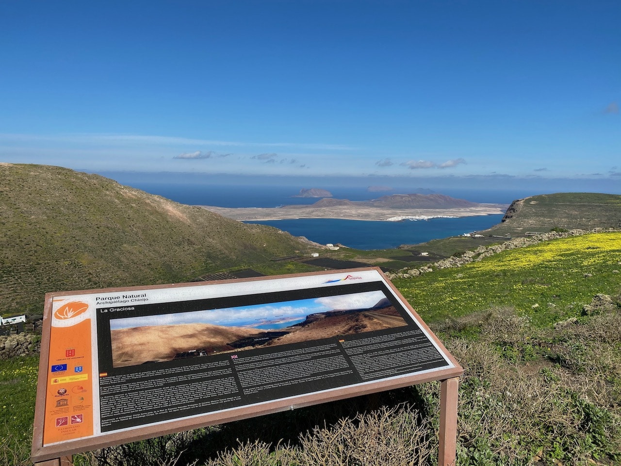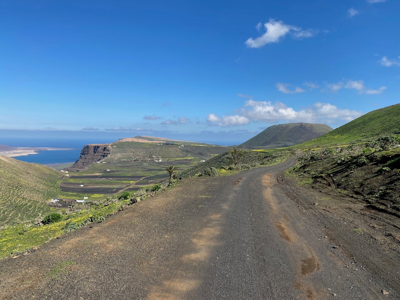 The track leads you around the back of the hill you walked up, there are beautiful views over to La Graciosa and down to the village of Guinate.