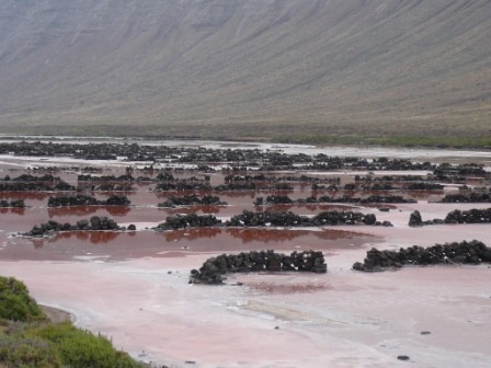 This is a tough walk but worth it! When you visit the Mirador del Río at the Northern tip of Lanzarote, there is a stunning view from the Risco down over the Río to the island of La Graciosa. If you look down you will see a beautiful sandy beach called the Playa del Risco and next to it the pink ruins of the Salinas del Risco.