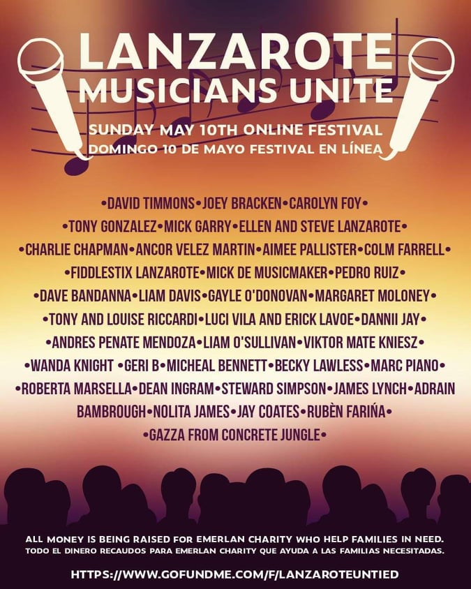 Donations can be made via GoFundMe on https://www.gofundme.com/f/Lanzaroteuntied between 8pm on Monday, 4th May and noon the day after the concert.