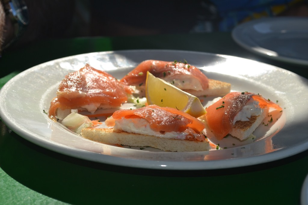 For starters, we ordered various mixed plates – Lapas, local cheese and smoked salmon tostadas. The lapas (limpets in English) were the best I’ve ever tasted – perfectly grilled in butter and garlic and sweet and tender. The salmon came on toast and was also delicious. Only the cheese was a little disappointing – it was typical of Lanzarote, and very fresh, but for me a little bland.