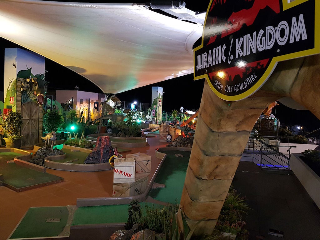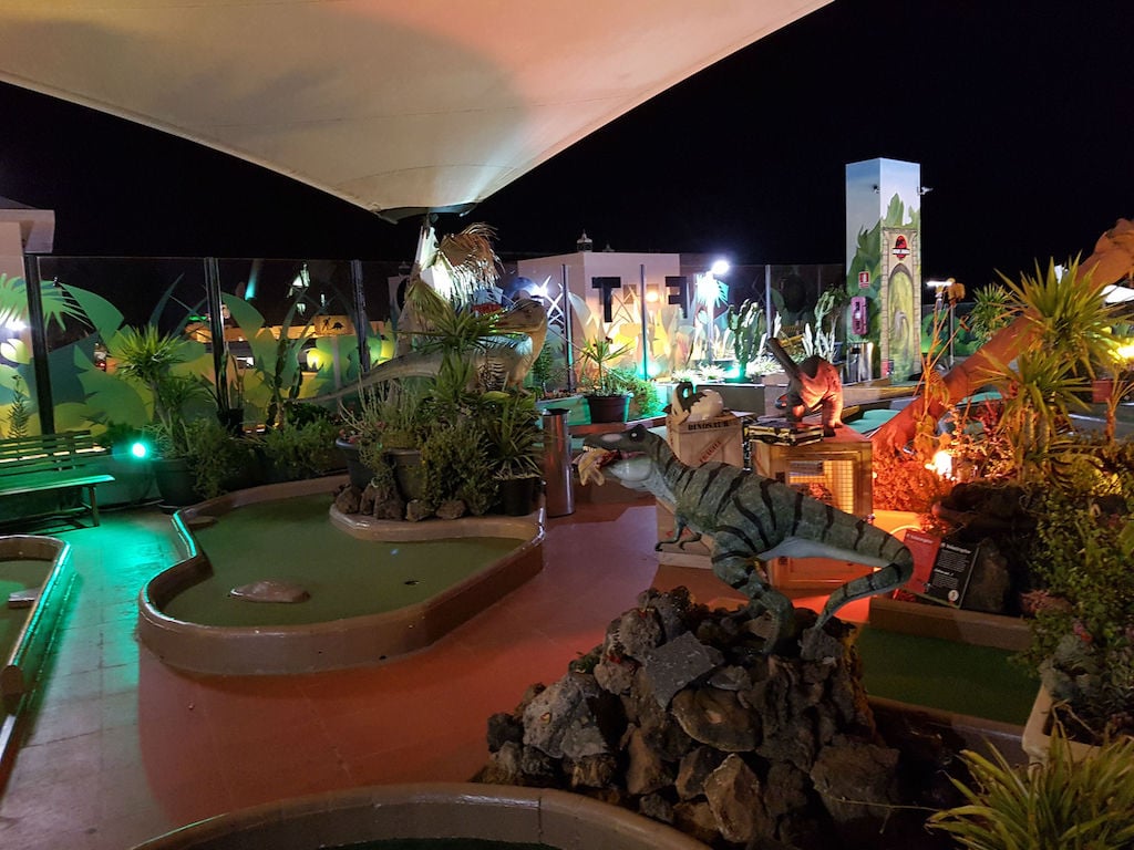 The crazy golf has been completely revamped and is now the Jurassic Kingdom Crazy Golf Adventure. It’s an interactive game with dinosaurs, smoking volcanoes and hatching dinosaur eggs among the foliage, and it’s great fun. There are amazing views during the day, but as darkness falls and the coloured floodlights come, it gets really atmospheric.