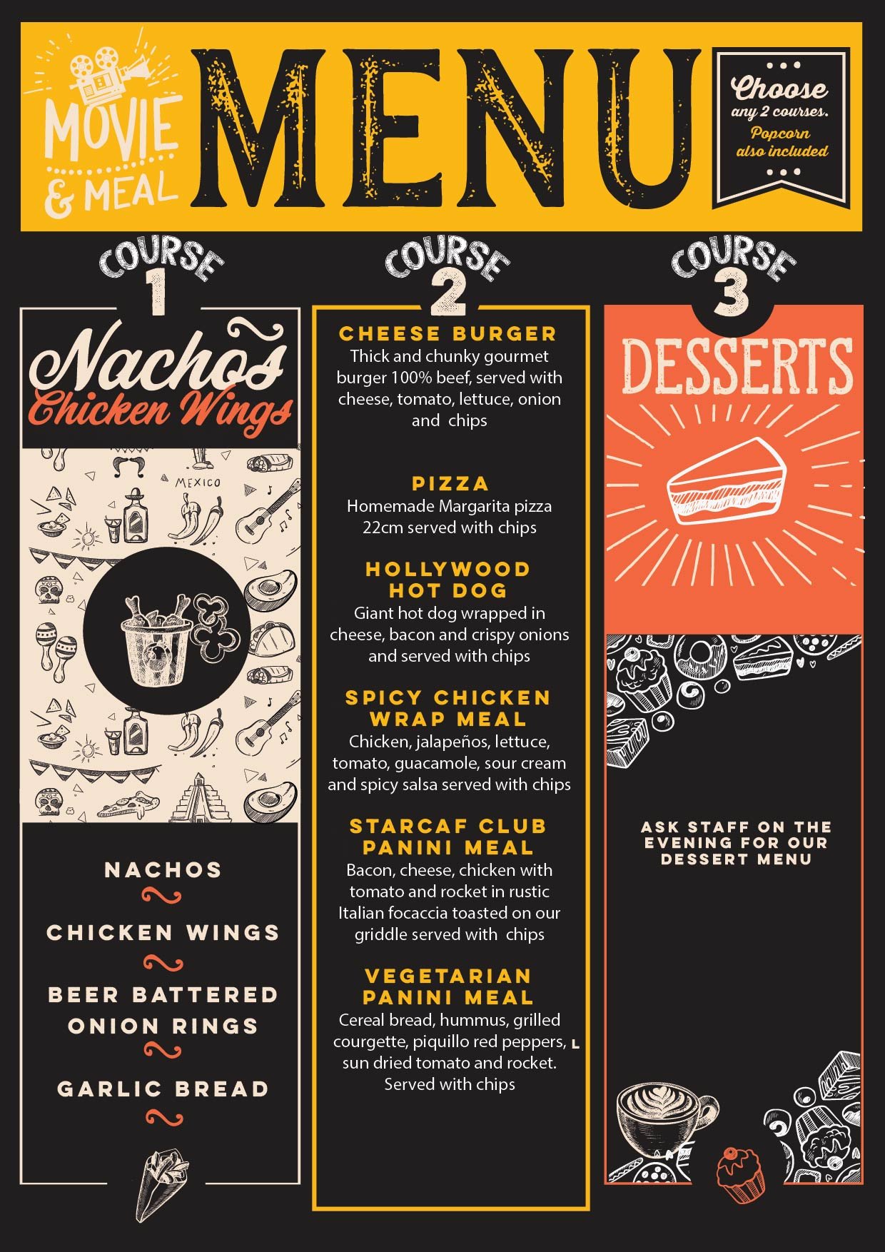 The Movie & Meal Deal is back, it includes the movie, reserved seating, 2 course dinner of your choice with popcorn for €33. Check the options on the poster too.