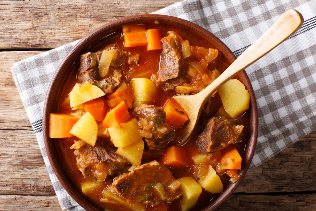 Very similar, but usually made with beef, and without the chick peas, adding carrots, sometimes potatoes and a thicker gravy.