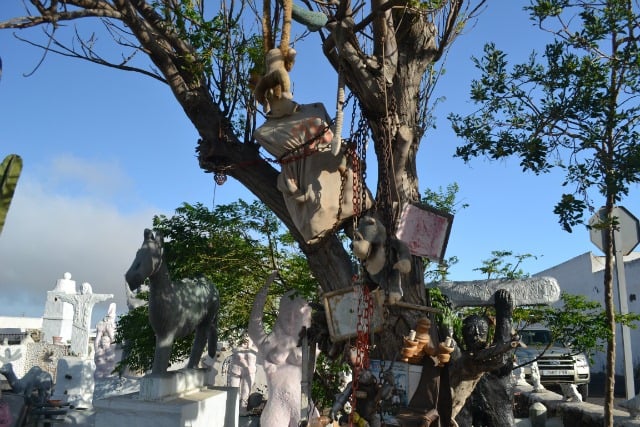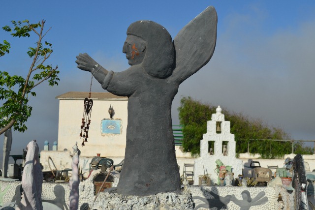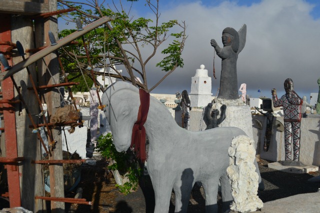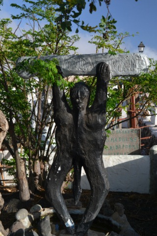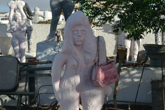 This strange collection of statues in Teguise frequently stops passers by in their tracks, cars pause in the road whilst their passengers stare, whilst on foot people stop to browse the chaotic display of figurines. The colour of the statues change frequently, at the moment they are predominantly white with odd ones picked out in shades of grey, green and pale pink.