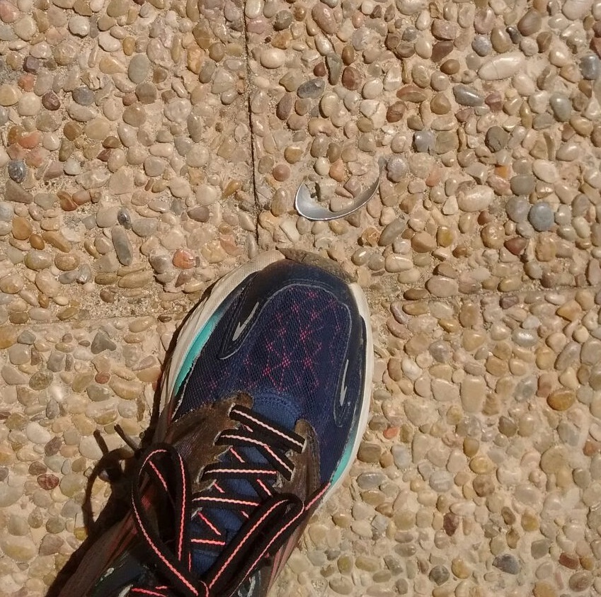 Although the recommended duration of more than 3 hours, that seems a bit excessive to me. It probably includes the actual search time. Because once you find it, there is only so long you can stare at a spoon half buried on a slap of pebble-studded concrete. Maybe it’s because I was lucky enough to find it quickly enough, about 45 minutes, I’d say. Other people claim it took them days. Other people never found it.