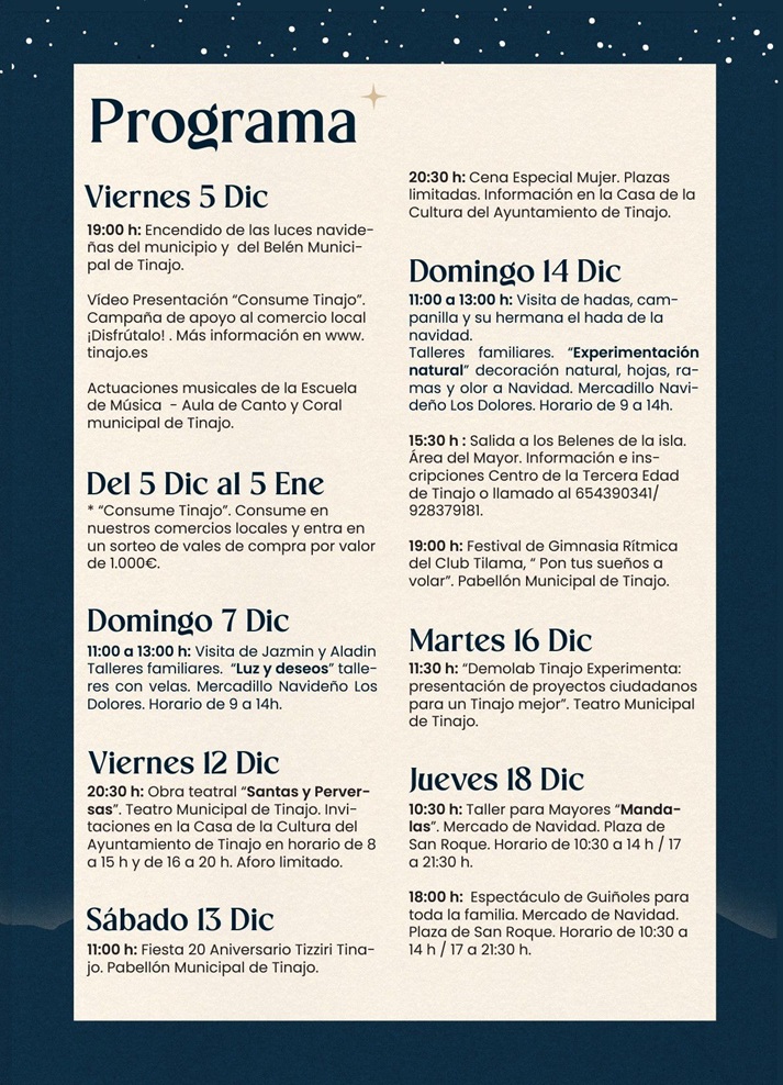Here’s the full programme for Tinajo for Christmas and New Year 2025 / 2026: