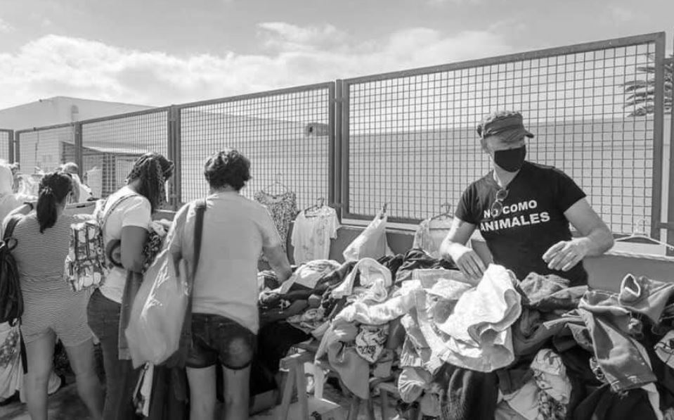 It’s very hands on. I usually arrive at 8:30. We have such a small space to work and sell, so we have to take all the dress rails outside. Then we tidy the shed itself and create a pleasant display. We are usually busy sorting donations before 10:00am, then we open to the public and sell items, accept new donations & organise what to put online. We then all have to be vigilant of picking up the dress rails that blow over in the inevitable wind of Lanzarote. At 12:00 we close to the public and put everything back inside the shed. In the afternoon I will put items online and update our El Almacen SARA Shed Facebook page.