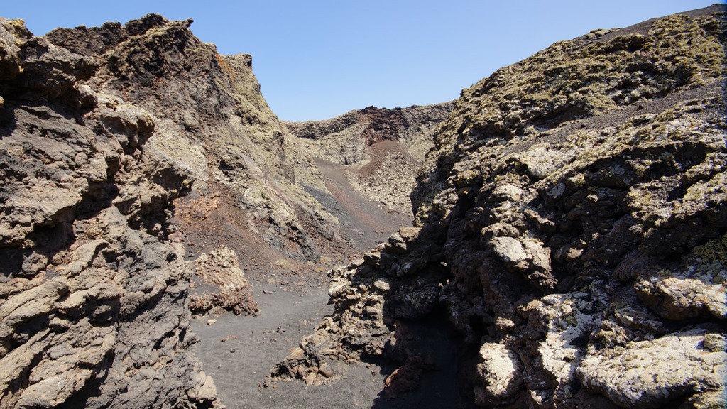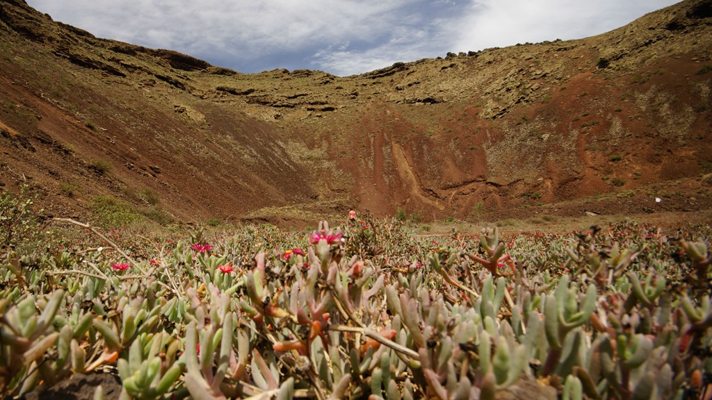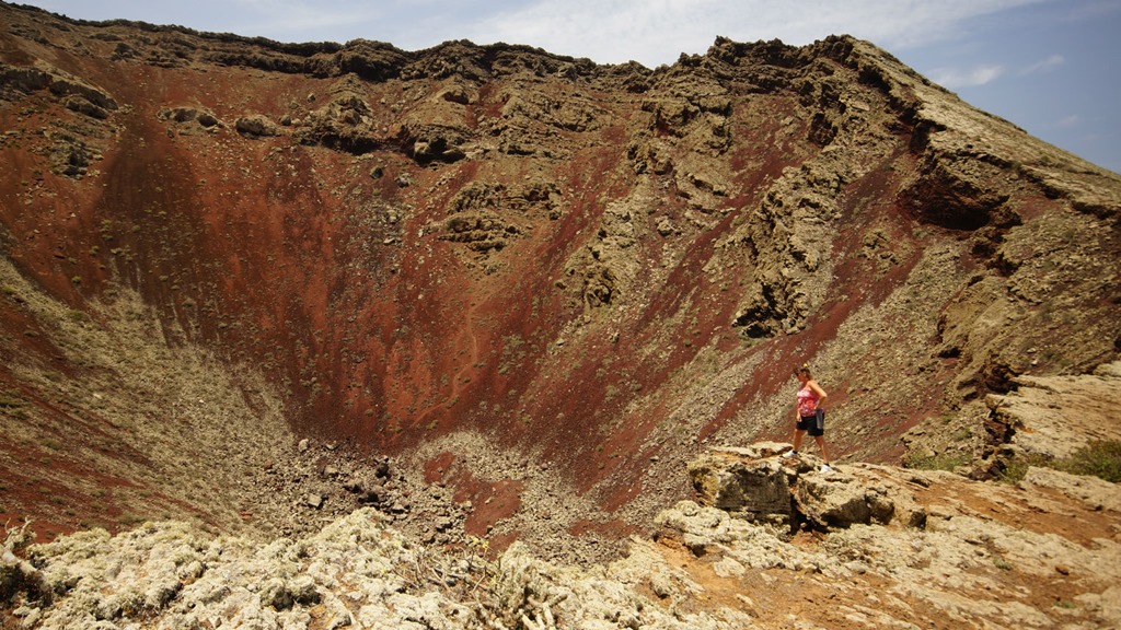 From the path to the volcano there are fabulous views down towards Punta Mujeres and Arrieta. A track winds down inside the crater, the size of which makes you feel very small.
