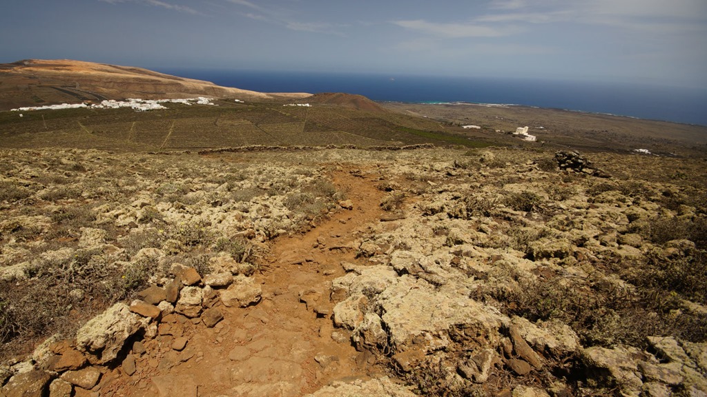 The track winds up through ancient vineyards towards the summit and is made up of loose stones so you will need decent walking shoes. It is also quite steep towards the end. However, you are rewarded with stunning views over Yé, Mirador del Rio, La Graciosa and beyond.