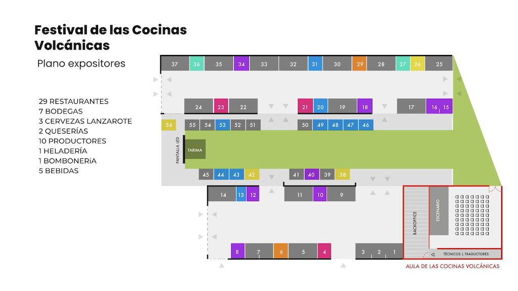The “Aula” (classroom in Spanish!) is a space for workshops and lectures given by well-known professionals from the Philippines, Mexico, Portugal and Spain, some of them with Michelin stars, all of whom have volcanic gastronomy in common, focusing on its products and culture. Attendance can be booked on the website mentioned above.