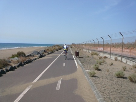 You need to leave the promenade for the central section in Playa Honda – it’s clearly marked, and just follow the “red route,” which takes you on the road system just back from the promenade. Or you can dismount and walk your bike through this 1700 metre section, as we did. It has been closed to cyclists for the safety of children, walkers and diners.