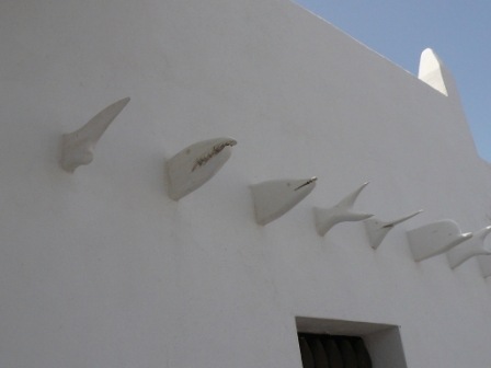 Have a look out for these unusual fish heads and tails on the houses as you approach the village.