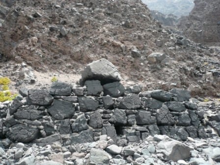 There is the shell of a building and the remnants of lava rocks built up for something, we guessed that maybe it had been for a platform or dock.