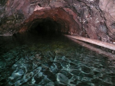 We switched on our head lamps and stepped inside, it was an instant relief from the sun’s hot rays, at the tunnel entrance there is a water channel on the right hand side, we knelt down to taste the flowing water which was cool and fresh. On the floor were long cylindrical shapes of solid lava rock where the sides of the tunnel had been drilled and the plug of rock removed.